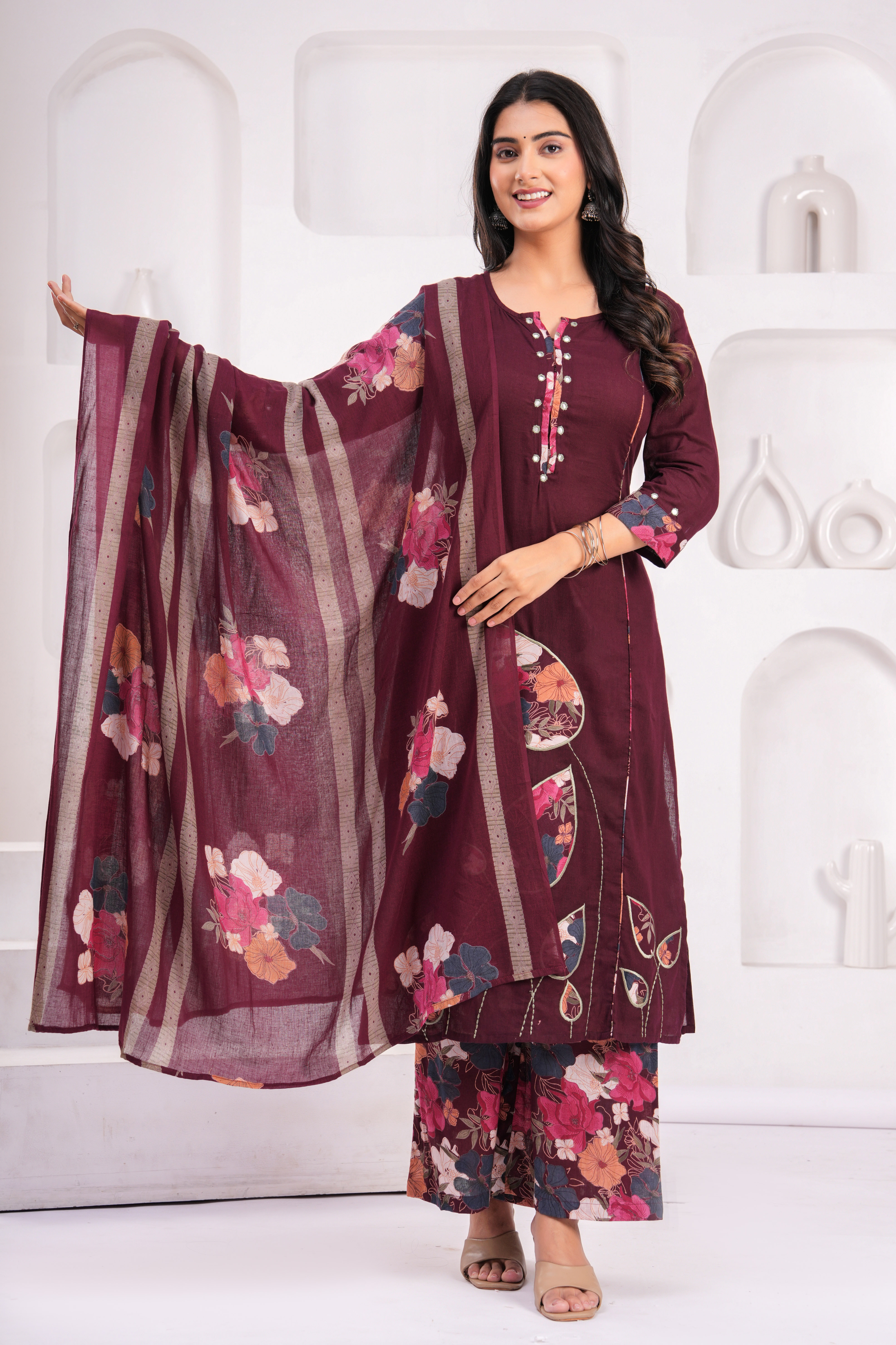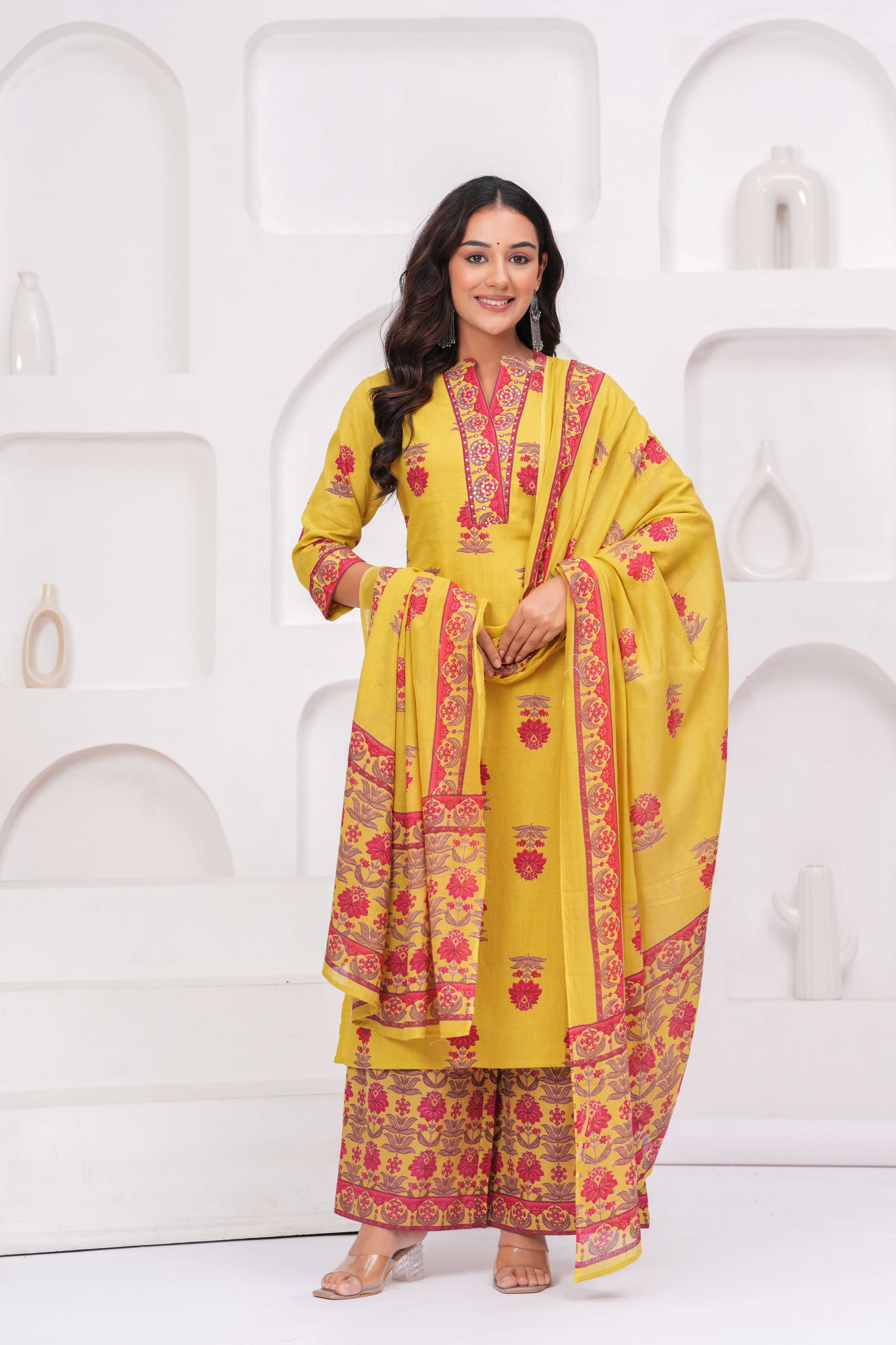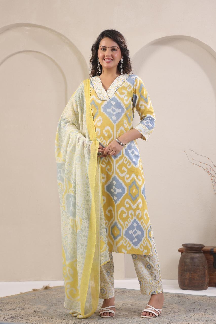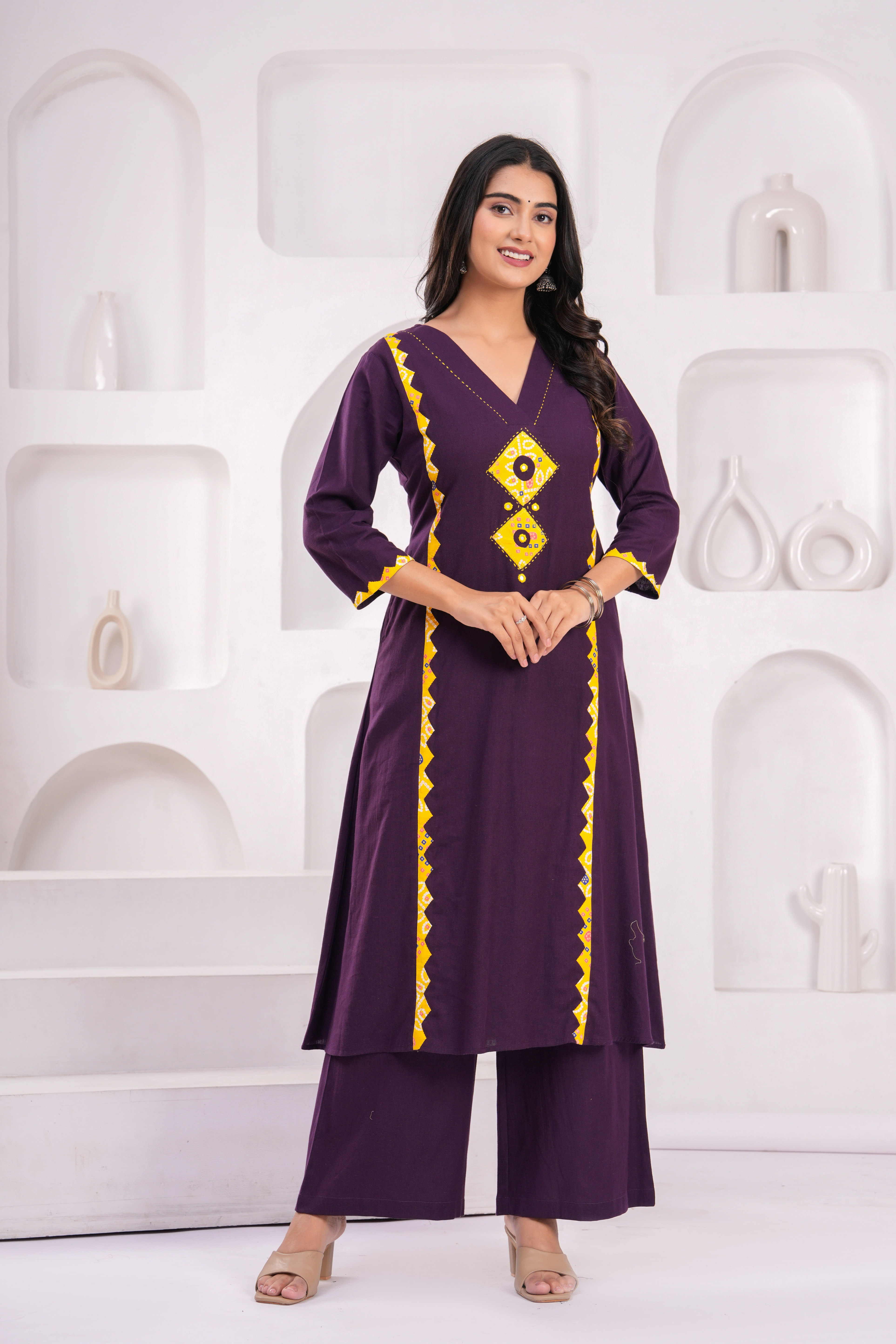 #2080 Elegant Purple & Yellow Embroidered Kurta Set
