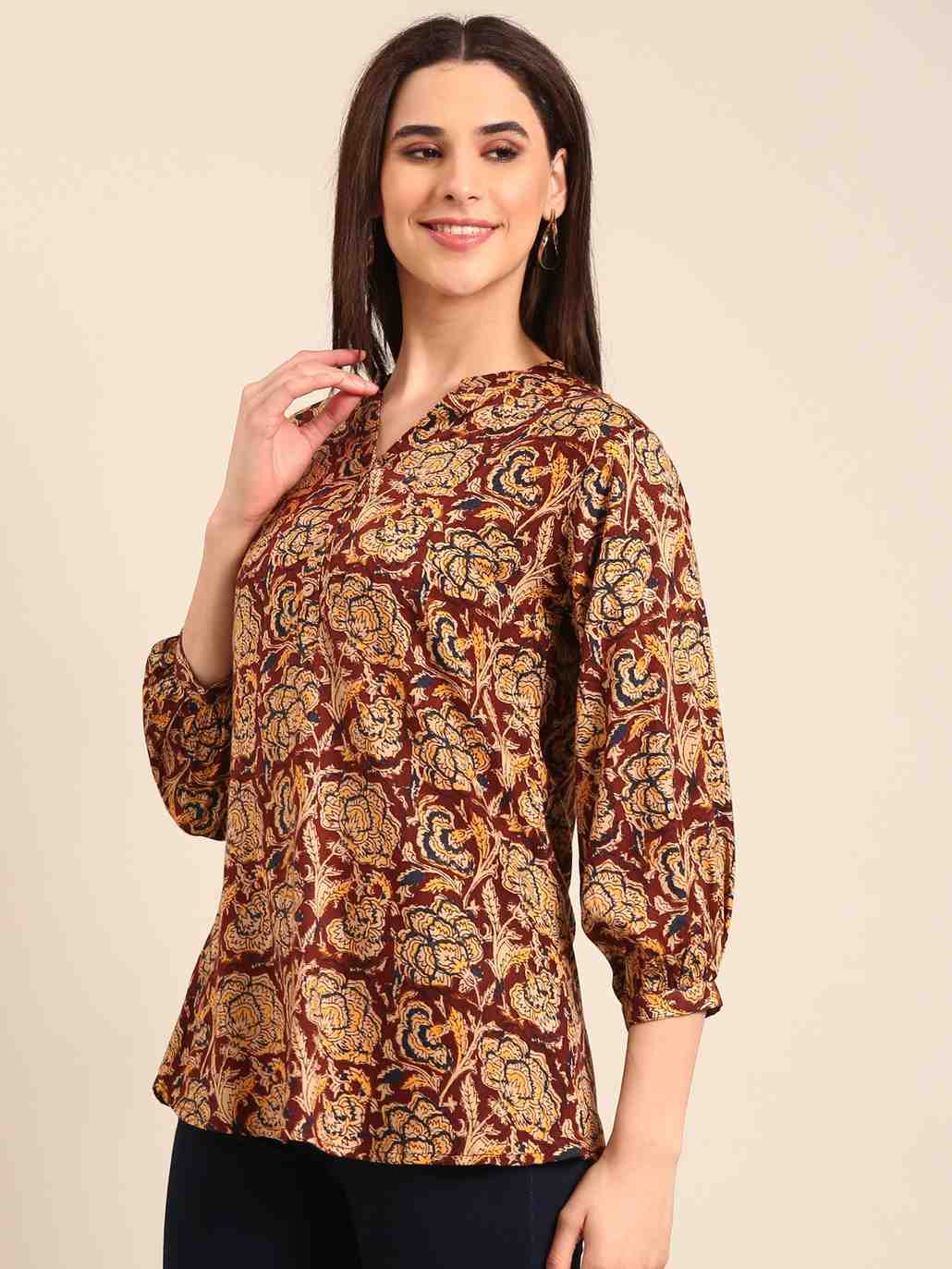 Elevate your wardrobe with our women premium rayon printed tops, crafted for both style and comfort. Featuring a chic hip-length cut, these tops showcase vibrant, eye-catching prints that effortlessly transition from day to night. The soft, breathable rayon fabric drapes beautifully, offering a flattering fit for every body type. Perfect for adding a touch of elegance to any outfit.