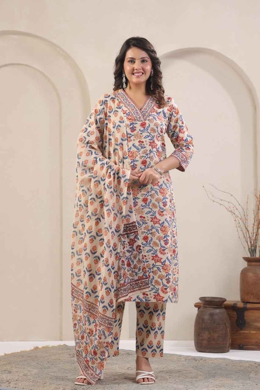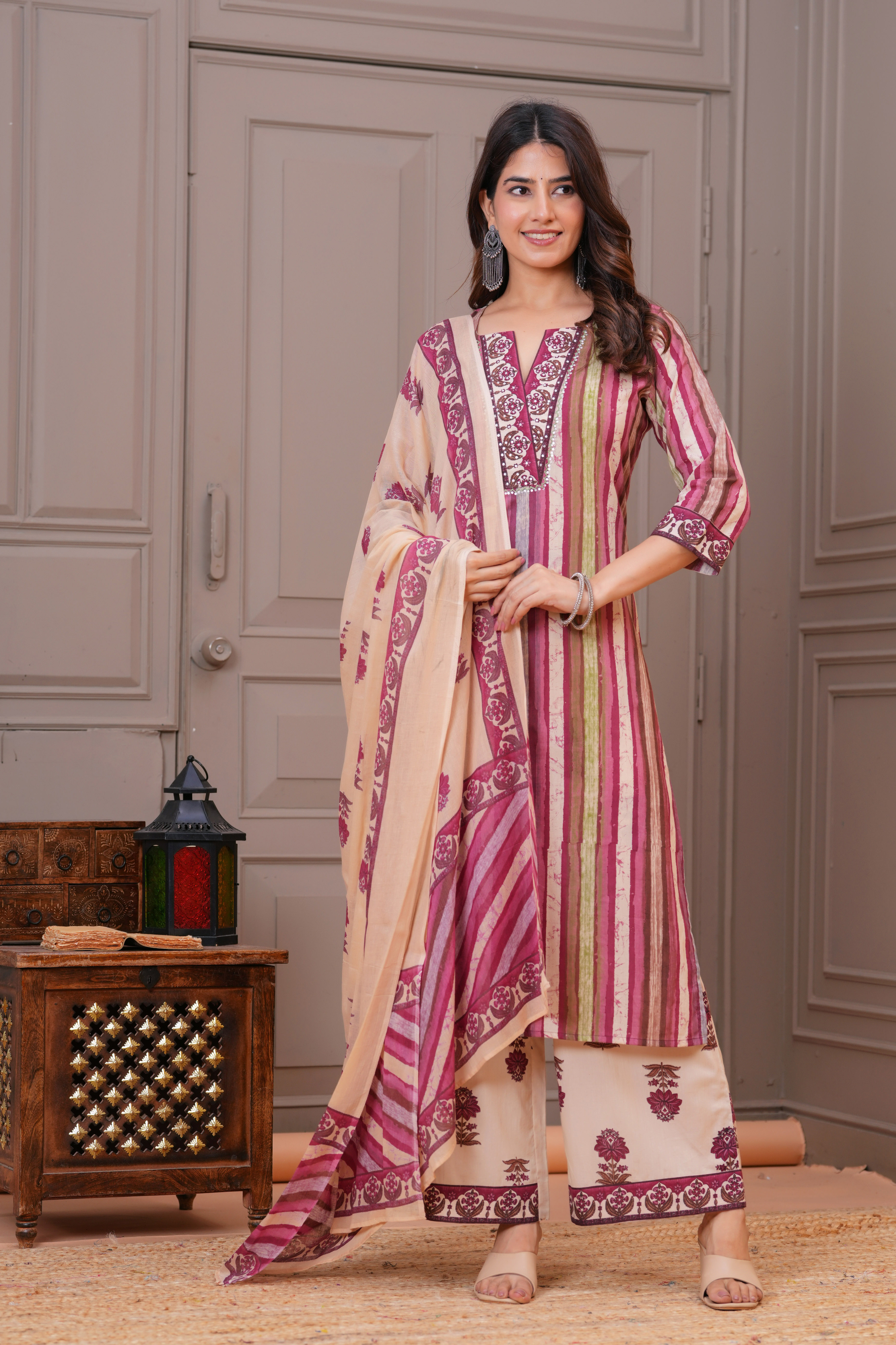 #2080 Elegant Purple & Yellow Embroidered Kurta Set